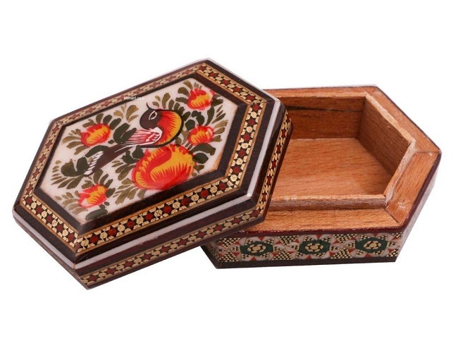 خاتم شامل طراحی زیرسازی، طراحی چسباندن لایه های خاتم بر روی زیرکار، پرداخت و جلا کاری اشیای خاتم کاری است.