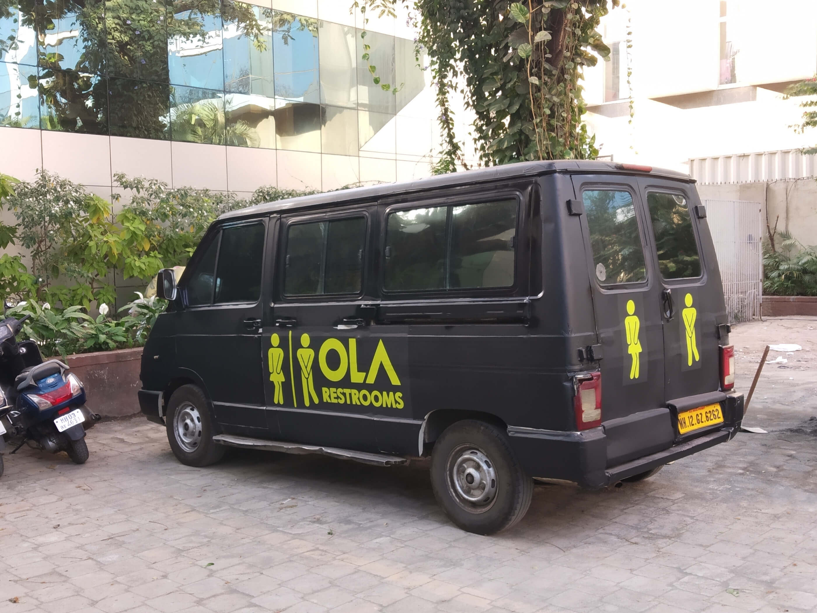 سرویسهای بهداشتی Ola - یک ون دارای توالت سیار برای استفاده عموم در هر زمان و هر کجا که نیاز دارند تبلیغ کرده است.