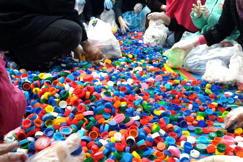 در اروپا فعالان محیط زیست درب های بطری را جمع آوری می کنند و فروش حاصل از آن را صرف کمک به افراد معلول می کنند.این کمپین با (شعار هر 100هزار درب بطری یک ویلچر) آغاز شد.این کمپین اولین بار در استان پرجمعیت تبریز اجرا شدو به علت تبلیغات گسترده ای که در سراسر کشور انجام شد استقبال خوبی از سمت مردم صورت گرفت به صورتی که از زاهدان، بوشهر،کلاردشت و...ارسال شد. علاوه برآن شرکت های مختلف و مدارس بسیاری همکاری کردند و سیل عظیمی از درب ظروف پلاستیکی در موسسه جمع آوری شد، طوری که روزانه یک نیسان به محل فروش می بردن و همین مسئله بسیار جای خوشحالی داشت.