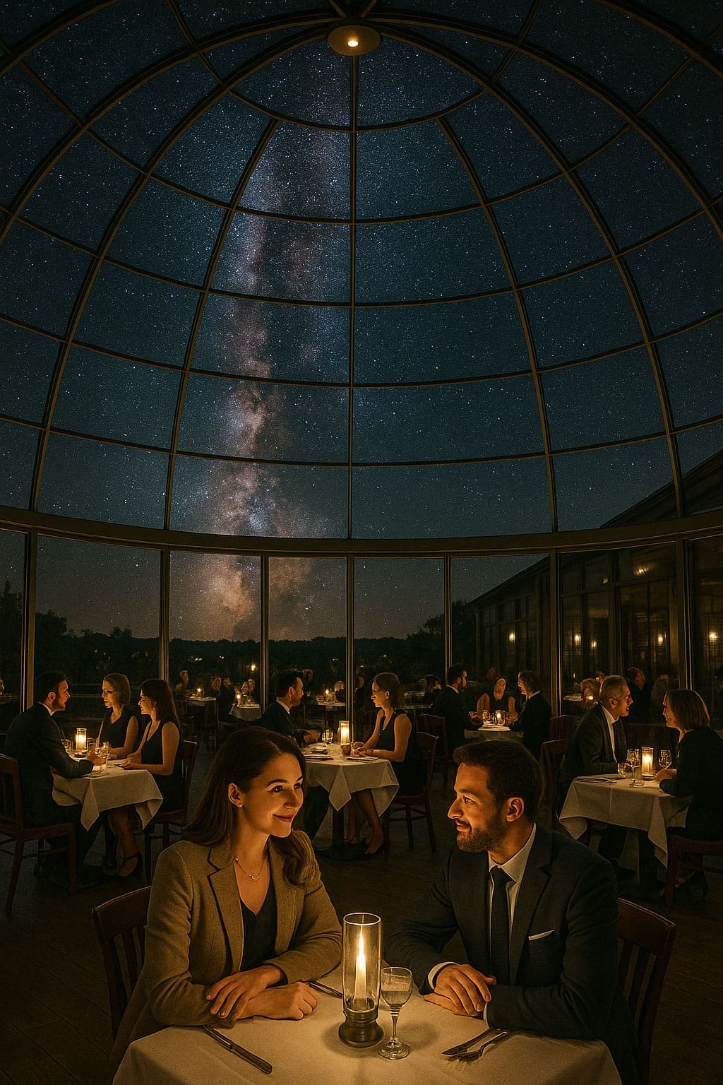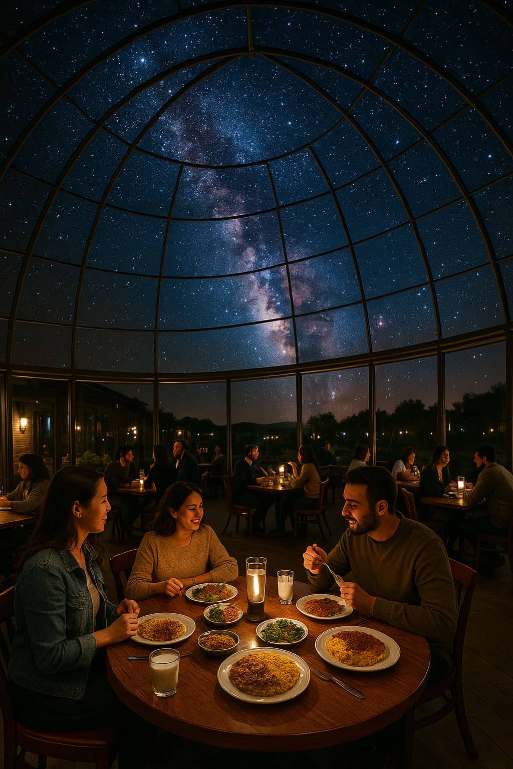 یکی از جذابترین بخشهای این ایده، امکان ترکیب آن با یک کافیشاپ یا رستوران خاص است. تصور کنید نوشیدن یک فنجان قهوه یا دوغ ایرانی در حالی که بالای سرتان کهکشان راه شیری بهوضوح دیده میشود. این تجربه میتواند برای زوجها، گردشگران و حتی خانوادهها یک لحظه بهیادماندنی خلق کند. چنین فضایی نهتنها جنبه تفریحی دارد، بلکه بهعنوان یک مکان فرهنگی و آموزشی نیز میتواند عمل کند.